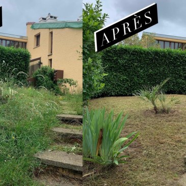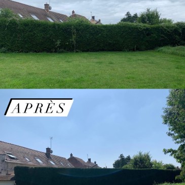 Taille d’une haie de Thuya de 2,20 x 25m. LTS Travaux, paysagiste élagueur en Seine-et-Marne et Essonnes
